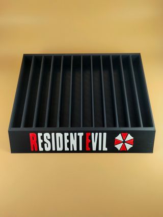 ➡️Expositor / Stand de la aclamada saga de videojuegos Resident Evil, compatible con juegos de PS4 y PS5 con capacidad para 12 juegos. 🔄Está Impreso en 3D con PLA. ✅Se pueden elegir los colores de la base y las letras si se quisieran otros. 📦Envío por Wallapay o entrega en mano📦 🔎Cualquier duda envíame un mensaje🔎