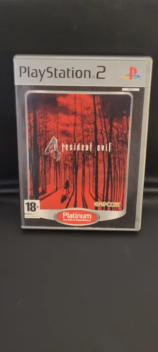 Videojuego Resident Evil 4 para PlayStation 2, edición Platinum. - Juego de acción y survival horror. - Incluye carátula y disco. - Clasificación PEGI 18+.