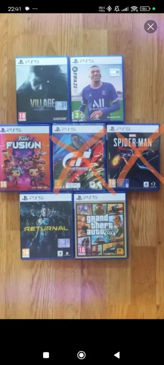 Para entrega en mano zona sur de Madrid o norte de Toledo.. Visita mi perfil para más juegos de la play 4 y la play 5. Lote de videojuegos para PlayStation 5. - Resident Evil Village... 27 € - FIFA 22... 10.€ - Funko Fusion...12 € - Gran Turismo 7 (precintado)...vendido - Spider-Man: Miles Morales... Vendido - Grand Theft Auto V...20 € - Returnal... 25 €