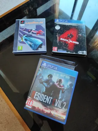 Pack de tres videojuegos para PlayStation 4. - Resident Evil 2 (Edición física, PEGI 18) - Back 4 Blood Special Edition (PEGI 18) Wipeout no incluido!!! Se puede recoger en Sevilla.