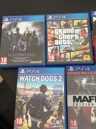 Lote de juegos+ consola PlayStation 4.hay juegos que no estan abiertos - Resident Evil - Grand Theft Auto V - Watch Dogs 2 - Mafia: Edición Especial