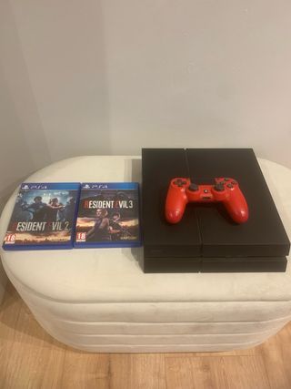 Consola PlayStation 4 con disco duro de 1TB y mando. - Capacidad de 1TB. - Incluye mando de color rojo. - Cable HDMI - Dos juegos Resident Evil