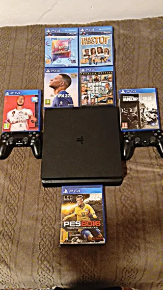 PS4 Slim + 2 Mandos + 7 Juegos (¡Incluye Cuenta co