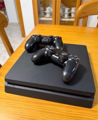 Consola PlayStation 4 Slim 500gb en color negro. - Incluye dos mandos, cable HDMI, cargador de mando y cable de alimentación. - La ps4 vine con Vue exploit ya instalado, permite jugar cualquier juego sin necesidad de usar lector blueray - Ha tenido poco uso, solo para jugar grandes título. Versión 12.02 - Diseño compacto y elegante.