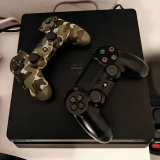 Se vende PS4 slim de 1tb con sus cables y 2 mandos uno original y el otro compatible todo está en muy buen estado estético y de funcionamiento