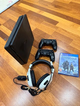 Playstation 4 Slim en perfecto estado. Se incluye dos mandos originales, los cables, el juego God of War Ragnarok y unos auriculares con microfono originales de playstation. Ademas de todo esto, la play va con una regalo que os describiré si estais interesados valorado en 125 € con cientos de juegos gratis. Cualquier duda, mas fotos o lo que necesites, envía mensaje.
