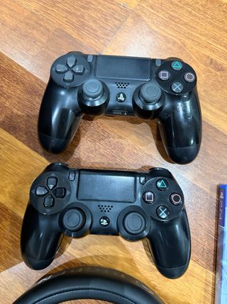 Pack PlayStation 4 Slim 1TB + accesorios – Lista para jugar Vendo PlayStation 4 Slim de 1TB en perfecto estado, siempre bien cuidada y con mantenimiento al día. Funciona como el primer día. Incluye: • Consola PS4 Slim 1TB • 2 mandos DualShock 4 • Fundas protectoras para mandos (roja y azul) • Cable de alimentación • Base de carga para mandos • Auriculares con micrófono. •Todo listo para conectar y empezar a jugar Muy bien cuidada, sin golpes ni fallos. Ideal para jugar desde el primer momento, no necesitas nada más. Extra opcional: •Teclado + ratón gaming → +20€ Se entrega todo lo que aparece en las fotos.