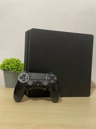 PlayStation 4 slim de 1tb almacenamiento, color negro, recien formateada para borrar todo lo que tenia de cuando la usaba, la vendo por no usar. Incluye mando original arañado y bastante golpeado pero que funciona, cable de carga al mando, cable HDMI y cable de corriente. Version del software 9.60.