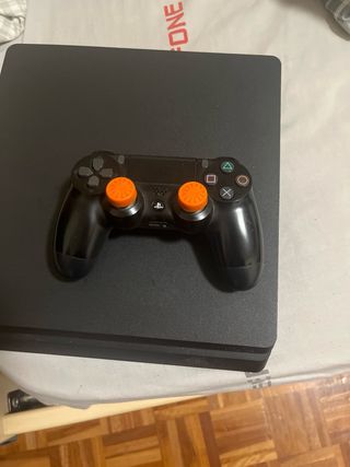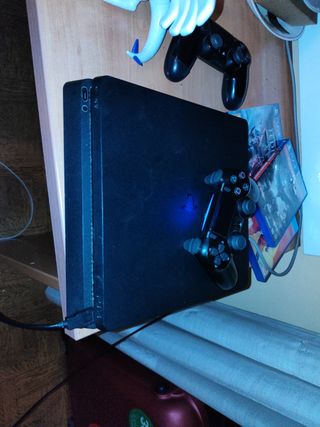Consola de videojuegos PlayStation 4 Slim. - Capacidad de 500 GB. - en color negro. - incluye mando y cables funciona perfectamente el mando le falta una goma al joystic pero funciona igualmente bien poco mas. incluyo algún juego que tengo por ahi en perfecto estado