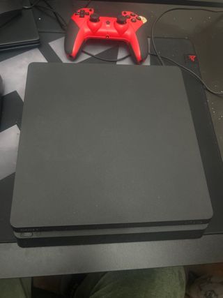 Se vende consola PlayStation 4 Slim con accesorios. No funciona el lector de disco, los juegos tienen que ser comprados digitales. (Sin disco) - Consola en color negro. - Mando en color rojo. - Mando en color blanco. - Base de carga para mandos. - Cables incluidos.