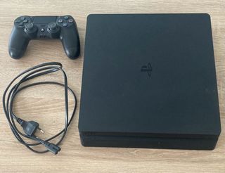 Consola PlayStation 4 Slim con disco duro de 1TB. - se le ha dado un uso normal tirando a poco y hay signos de desgaste pero funciona perfectamente como el primer día, nunca me ha dado un fallo ni nada. - sin cables ni mandos - Capacidad de almacenamiento de 1TB. - No es ruidosa (evidentemente cuando se inicia hace ruido pero eso desde que la compré)
