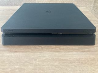 PlayStation 4 Slim en color negro, en buen estado. Incluye un mando. - Consola en perfecto estado. - Mando en buenas condiciones. - Regalo para sujetar la play en vertical, creo que no funcionan los ventiladores, yo siempre la he usado para apoyarla.