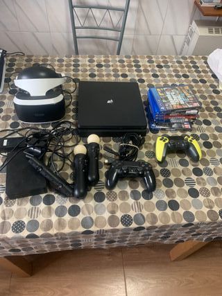 Se vende ps4 slim 500 gb, kit de realidad virtual (gafas, cámara, mandos move), juegos y mando. Se puede comprar todo junto o productos por separado. Preguntar para saber precio de cada producto.