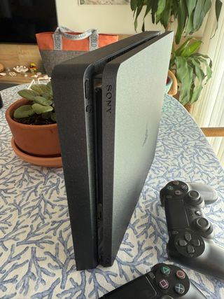 Vendo PS4 slim de 500GB en perfecto estado de funcionamiento. Incluye un mando original DualShock 4 y todos los cables necesarios para conectarla y empezar a jugar al momento. ✅ Consola cuidada y funcionando sin problemas ✅ 500GB de almacenamiento para juegos, apps y contenido multimedia ✅ Mando original DualShock 4 incluido 📦 Entrego lista para usar.