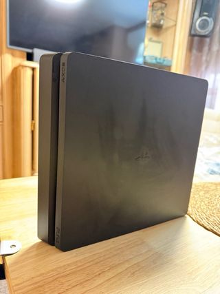 PlayStation 4 Slim en buen estado, lista para disfrutar. Incluye dos mandos y cinco juegos: Cars 3, Minecraft, Grand Theft Auto V, FIFA 22 y FIFA 23. - Dos mandos inalámbricos. - Cinco juegos en perfecto estado. - Consola en excelentes condiciones. Tengo la caja guardada