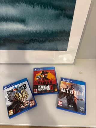 Vendo PlayStation 4 Slim 1TB en perfecto estado. Incluye: ✅ Mando original ✅ Cable HDMI + cable de alimentación ✅ 8 juegazos: Red Dead Redemption 2, GTA V, Dragon Ball Xenoverse 2, Far Cry 4, Battlefield 1, Just Cause 3, FIFA 17 y FIFA 18. 👉 Todo funciona de lujo. Las rayas en la carcasa son solo estéticas, no afectan en nada. 👉 Ideal para empezar a jugar desde el primer día, con un catálogo brutal de juegos. ⚡SOLO ESTA SEMANA Entrega en mano o envío a toda España 🚚