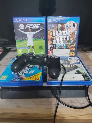 PlayStation 4 Slim en perfecto estado, con 500 GB de almacenamiento. Incluye 3 mandos, cables , los juegos FIFA 16, F1 2021 y Destiny 2 y mochila para su trasporte - Incluye 3 mandos - Viene con tres juegos: FIFA 16, F1 2021 y Destiny 2. - Se entrega con todos los cables necesarios. - Y mochila para su trasporte
