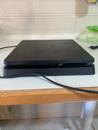 PlayStation 4 Slim 500 Gb en buen estado. Incluye dos mandos y todos los cables necesarios para su funcionamiento. Pasta termica puesta recientemente y funcionando al 100%100. Solo le falta la tapa pequeña q cubre el disco duro pero no afecta a su funcionamiento. - Dos mandos incluidos 1 Inalambrico y el otro con cable. - Cables de alimentación y HDMI incluidos. Se escuchan ofertas, no hago envíos por wallapop, solo por correos. También escucharía ofertas para posibles cambios.