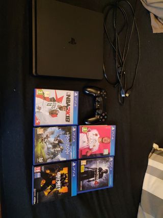 Consola PlayStation 4 Slim de 500GB funcionando perfectamente con varios juegos y dos mandos incluidos alguno digital pero no se si se quedan guardados cuando elimine mi cuenta, vendo todo junto y no rebajo que tiene muchos juegos