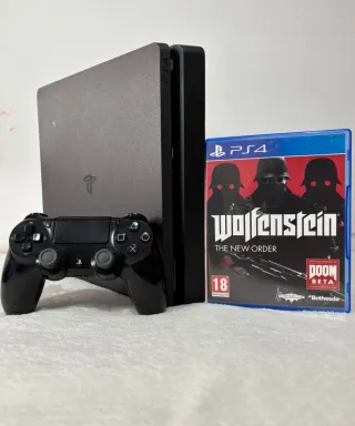 PS4 Slim 1TB en perfecto funcionamiento. Incluye 1 mando original, cables, y el juego Wolfenstein: The New Order. Consola cuidada, silenciosa y lista para jugar desde el primer minuto. No tiene caja. Entrega en mano o envío. Cualquier duda, pregunta sin compromiso.