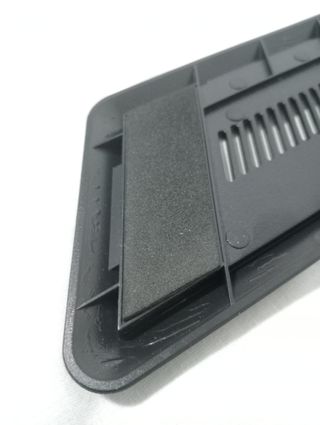 Soporte vertical diseñado para la consola PS4 Fat. Permite colocar la consola en posición vertical, permaneciendo estable y bien ventilada, a través de los conductos que tiene la base para que entre perfectamente la ventilación por el lado que entra en la base. No se ha llegado ni a probar. No pongo "en su caja" porque venía en bolsa y no sé si la tengo aún. - Diseño en color negro. - Material plástico resistente.