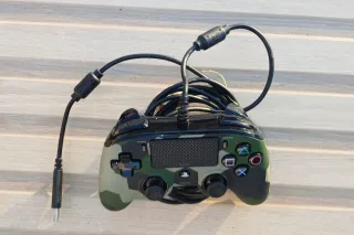 Mando original para PlayStation 4 con un diseño de camuflaje. - Diseño de camuflaje verde y marrón. - Botones de control estándar de PS4. - Muy poco uso, prácticamente nuevo. - No incluye cargador. [SOLO ENVIOS]
