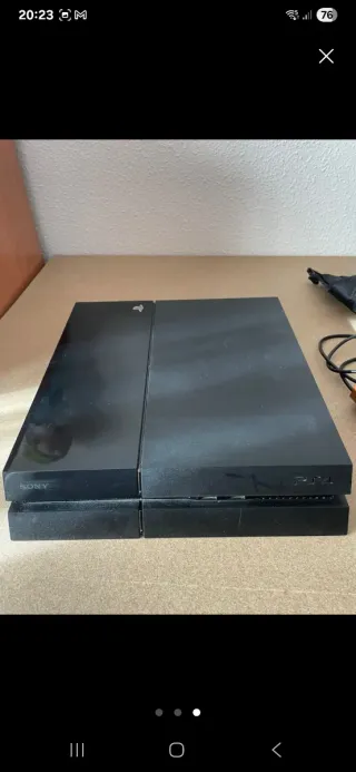 Consola PlayStation 4 en color negro, con 1 mando incluido. - Incluye cable de alimentación. - Incluye algunos juegos Tiene un pequeño golpe en la carcasa, no afecta al funcionamiento