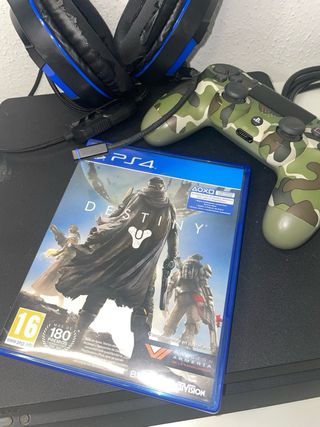 Consola PlayStation 4 slim de 500GB Version 12.00 - Mando con diseño de camuflaje. - Incluye el videojuego Destiny. - Auriculares Gaming con microfono - Cables TODO FONCTIONA BIEN ✅