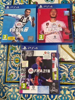 Pack FIFA PS4 (FIFA 19, 20 y 21). Juegos en muy buen estado, discos sin rayas y con caja original. Funcionan perfectamente. Ideal para jugar offline o con amigos. Se puede compra por separado: - FIFA 19 - FIFA 20 - FIFA 21