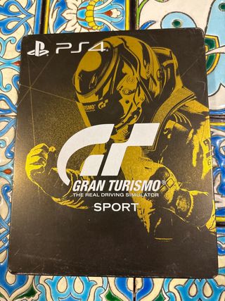 Steelbook de Gran Turismo Sport para PS4. - Diseño metálico dorado con arte de piloto. - Incluye el juego Gran Turismo Sport.