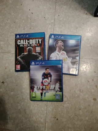Lote de tres videojuegos para PlayStation 4. - Call of Duty: Black Ops III - FIFA 16 - FIFA 18 Para coleccionista no están probados.