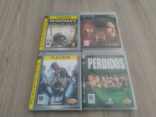 Lote 4 juegos para la consola PlayStation 3: - Juego de Tronos. - Resistance - Perdidos - Assassins Creed Todos completos excepto Perdidos. Probados y funcionando perfectamente. Hago envíos y acepto pago y entrega en mano en Castellón.
