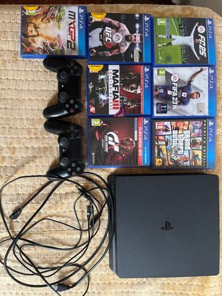PS4 Slim Negra + 2 Mandos + Juegos