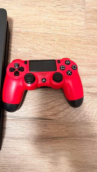 Consola PlayStation 4 en color negro, junto con dos mandos en color rojo. - Incluye consola. - Dos mandos de control.