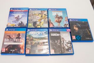 Lote de siete videojuegos para PlayStation 4. En perfecto estado. Una mezcla ideal de acción, aventura y disparos. También los vendo por separado o combinados. Ver pefil. Death Stranding (15€) Saints Row (Day One Edition) (12€) Horizon Zero Dawn Complete Edition (PlayStation Hits) (10€) Far Cry 5 (10€) Battlefield 1 Revolution (5€) Rainbow Six Siege (5€) FIFA 17 (5€) LOTE COMPLETO 50€ PARA COMBINACIONES, PREGUNTAR