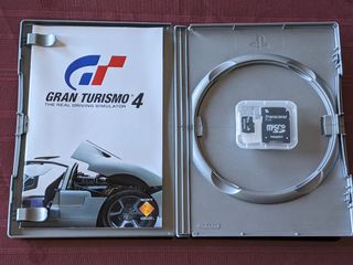 Caja con carátula + manual del Gran Turismo 4 para Play Station 2. ¡Ojo! SIN DISCO. Regalo tarjeta SD marca SanDisk de 2Gb con adaptador.