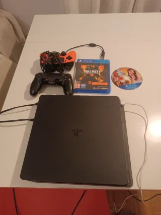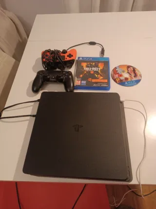 PS4 Slim modificada de 500gb 2 mandos Todos los cables necesarios Juegos: gta v, call of duty, battlefield 1, doom, ratchet clank, horizon zero down...