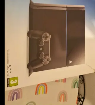 Consola PlayStation 4 Slim con disco duro de 500GB. Incluye un mando personalizado y tres videojuegos. - Mando DualShock 4 con diseño multicolor. - Juegos incluidos: Grand Theft Auto V, FIFA 18, God of War Ragnarök y FIFA 19. - Incluye caja original de la consola.