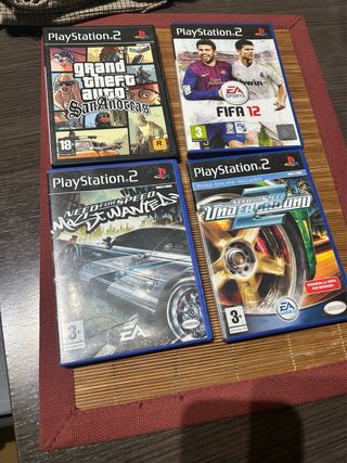 Pack de cuatro videojuegos para PlayStation 2. - Grand Theft Auto: San Andreas - FIFA 12 - Need for Speed: Most Wanted - Need for Speed: Underground