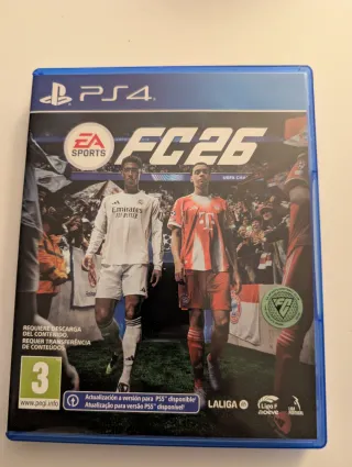 Videojuego FC 26 para PS4. Disfruta de la experiencia deportiva. - Requiere descarga de contenido. - Actualización a versión para PS5 disponible. - Incluye logos de LaLiga y UEFA Champions League.
