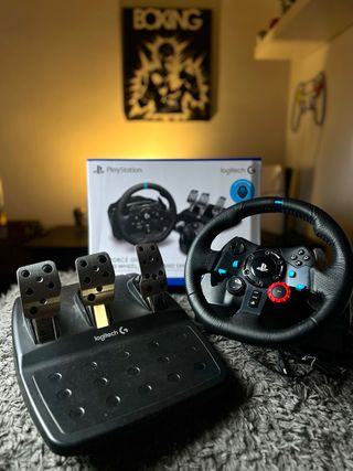 Volante de simulación de conducción Logitech G29 compatible con PlayStation 3/4/5 y PC como nuevo Se incluye: - Volante de cuero con botonería y levas - Base de pedales (acelerador, freno y embrague) con antideslizantes - Cables de conectividad y alimentación Todo el equipo se encuentra en perfecto estado tanto físico como de funcionamiento. Motivo de venta: cambio por volante Logitech G923 SE Se entrega en caja de volante Logitech G923 SE por no disponer de la original. Trato tanto en persona como por envío El envío se realizará en menos de 24/48h con embalaje de protección Cualquier duda comentar