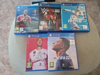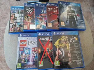 Lote de videojuegos para PlayStation 4. Todos en perfecto estado. Incluye: - Grand Theft Auto V - WWE 2K19 y WWE 2K16 - Marvel's Spider-Man - Uncharted 4: El Desenlace del Ladrón - LEGO Harry Potter Collection - Le Tour de France 2016 - FIFA 19, FIFA 20 Y FIFA 22 - Hasbro Family Fun Pack - PES 2016 EURO Edition Para precios por separado, mirar perfil.
