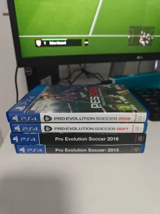 Pack de cuatro videojuegos de fútbol para PlayStation 4. - Pro Evolution Soccer 2019 - Pro Evolution Soccer 2017 - Pro Evolution Soccer 2016 - Pro Evolution Soccer 2015