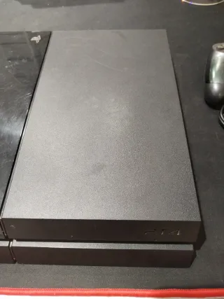 Consola PlayStation 4 FAT en color negro 500 GB. Incluye caja original Con dos mandos oficiales Dualshock 4: el blanco funciona perfectamente y el negro falla un poco el joystick. Juegos: NBA 2K17, FIFA 17 y FIFA 18. Disco duro externo rojo 1 TB: para que quepan todos tus juegos ;) Cable de alimentación, cable HDMI y cable para cargar los mandos.