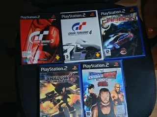 Pack de cinco videojuegos para PlayStation 2. - Gran Turismo 3: A-Spec SCES 50294 - Gran Turismo 4 SCES 51719 - Need for Speed: Carbon SLES 54321 - Shadow the Hedgehog SLES 53542 - WWE SmackDown vs. Raw 2008 SLES 54793 PAL PS2 No es negociable ni vendo por separado , gracias.