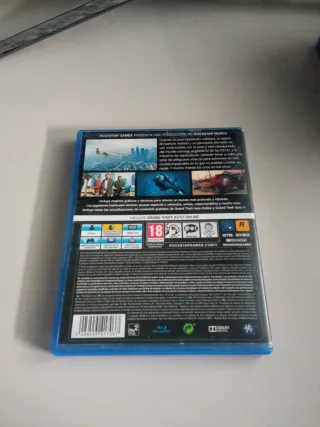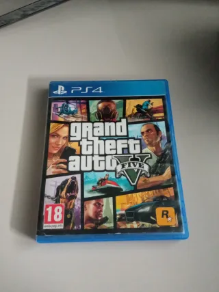 Videojuego Grand Theft Auto V para PlayStation 4. - Juego de acción y crimen. - Mundo abierto con elementos de carreras y disparos.