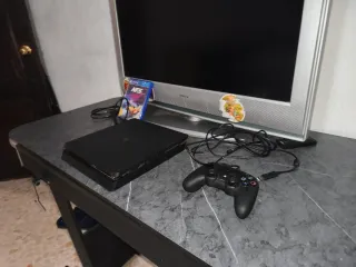 Consola PS4 Slim con disco duro de 850GB, televisión grande y mando Nacon. Incluye consola PS4 Slim. Televisión de gran tamaño. Mando Nacon. Juego Need for Speed Heat para PS4. Cables necesarios PS4 + HDMI TELEVISOR SIN MANDO PERO ARRIBA TIENE LOS BOTONES NECESARIOS PARA CONTROLAR PLAY 4 Y TELEVISOR NORMAL Ps4 va perfecta mando perfecto