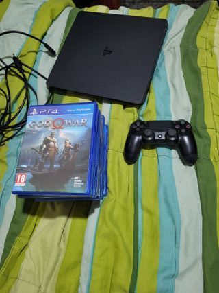 Consola PlayStation 4 Slim en color negro, +PACK de varios videojuegos entre ellos Saga GOD OF WAR,THE LAST OF US,CALL O DUTY,SPIDERMAN etc,todo bastante nuevo y sín apenas uso ya que no dsipongo de tiempo,ní soy mucho de jugar.PRECIO FIJO,NO REBAJAS. - Consola PS4 Slim. - Videojuego God of War+Colección de videojuegos.
