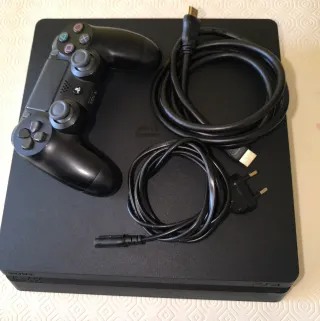 Consola PlayStation 4 Slim en color negro con 512GB de almacenamiento. Incluye dos mandos, cables de conexión, un cargador de mandos y el juego Grand Theft Auto V. - Incluye dos mandos. - Incluye el juego Grand Theft Auto V. Sin apenas uso. Escucho ofertas.