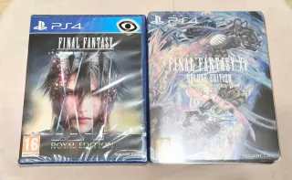 Pack Final Fantasy XV para PlayStation 4. Consta de steelbook de la edición Deluxe con película en Blu-ray (sin juego) y juego en edición Royal precintado. La edición Royal incluye todo el contenido descargable excepto "Episode Ardyn" que únicamente se puede adquirir por separado. - Edición Deluxe sin juego. - Edición Royal precintada con más de 20 contenidos descargables. - Steelbook metálico.